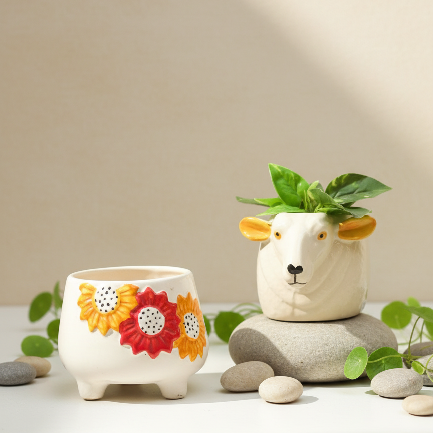 Set of 2 - Floral Bliss & Essential Teal planter combo