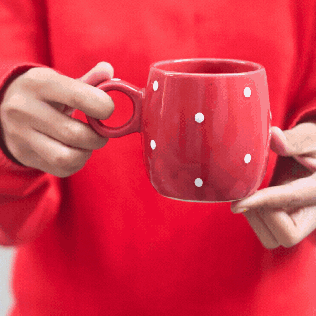Deep Red Polka Mugs