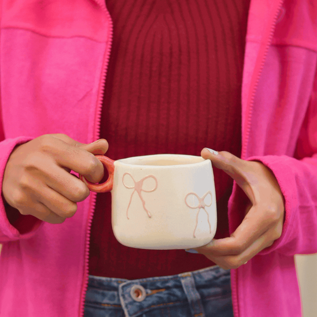 Bow Mug & HOHOHO Handmade Dessert Plate in a Gift Box