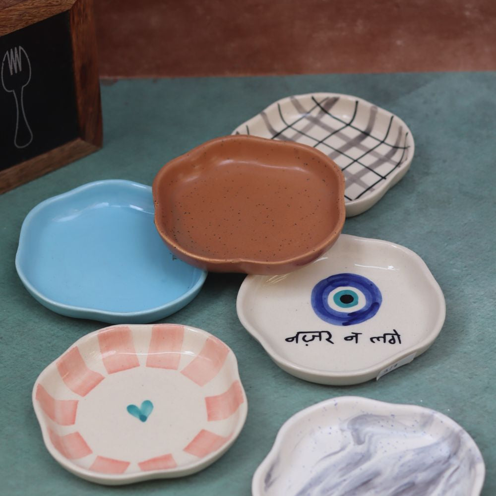 Set of 6 HandPainted & Neutrals Handmade Dessert Plate (for the price of 5)