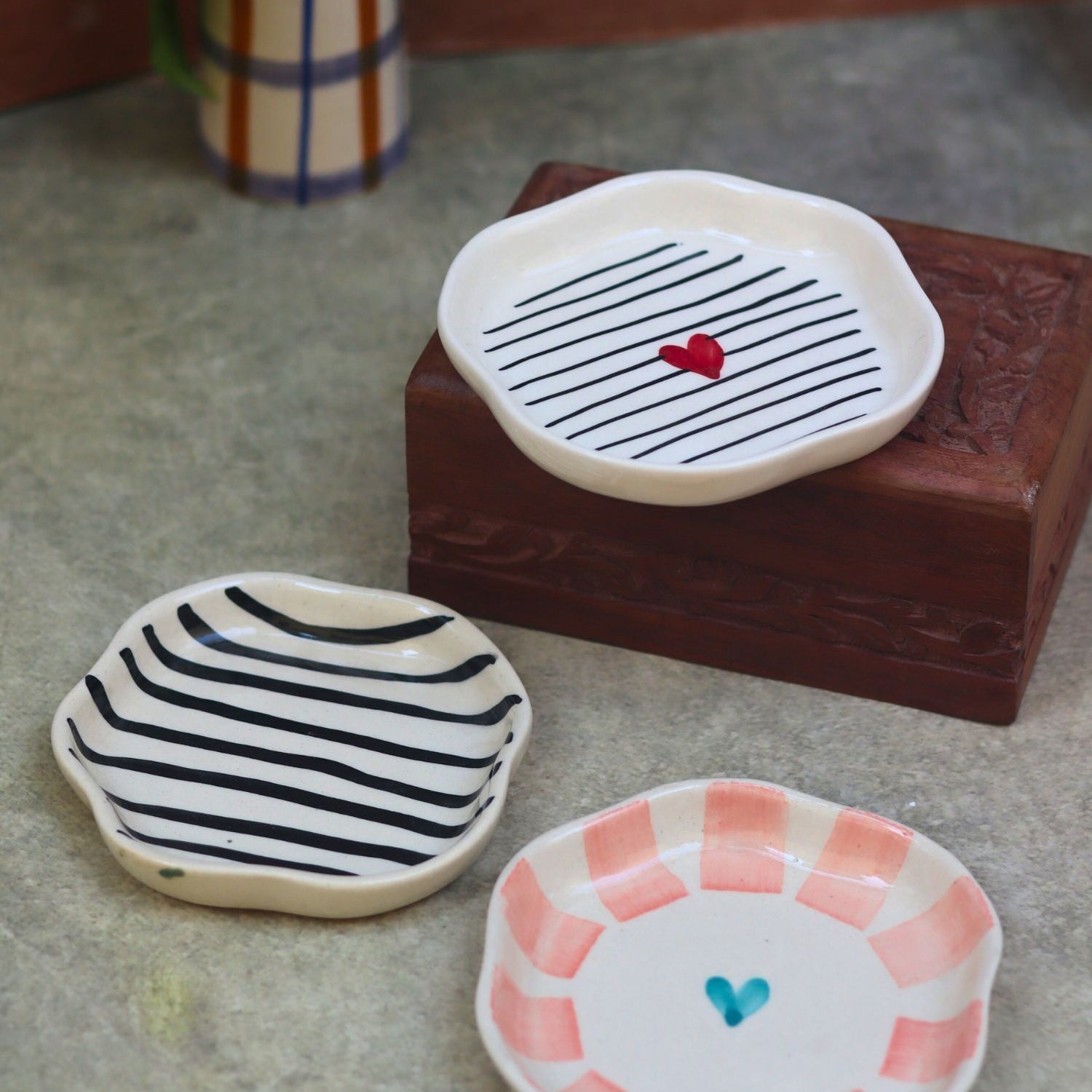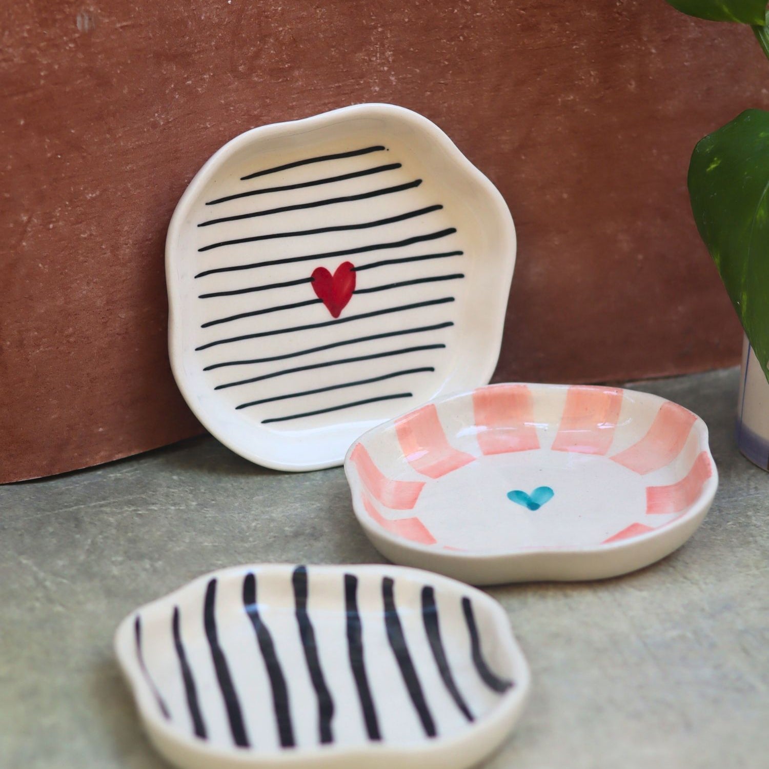 Set of 3 - Heart & Lined Dessert plate
