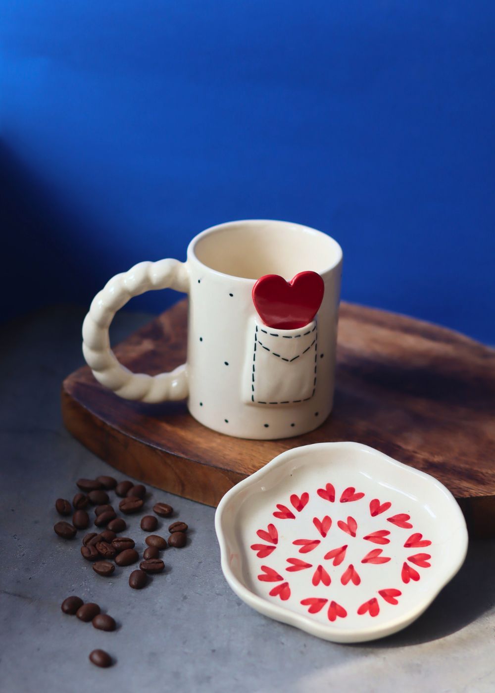 Indulge in a truly unique and luxurious experience with our Love Letter Mug & All Heart Handmade Dessert Plate set. Handcrafted with premium quality ceramic, each piece exudes sophistication and exclusivity. Made with love in India, this handmade combo is the perfect addition to any elegant table setting.